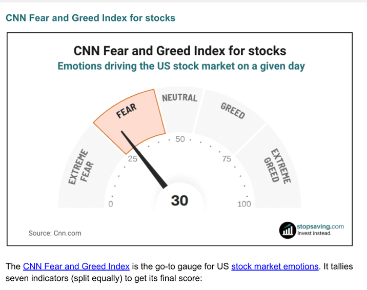 o The index now is 30 and is considered FEAR