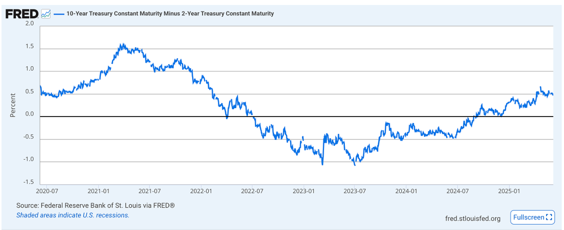 o The current 10Y – 2U yield spread is at 0.48 which is relatively healthy